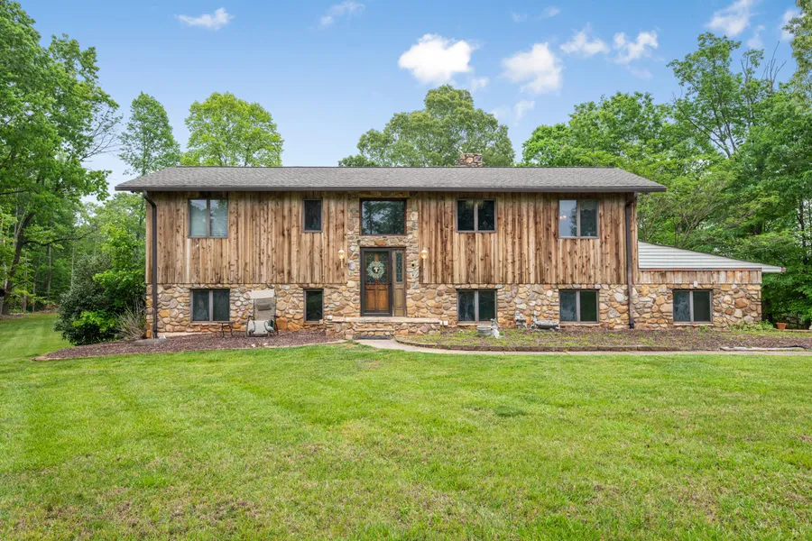 Welcome home to your own private retreat with this rustic country home perched on 18 peaceful acres with creek on the back side of the property. Home offers a large back deck, inground pool, and 3-stall horse barn with established pastures and some fencing (needs repairs). Wood-burning fireplace in living room that leads out to deck. Convenient home office is located just off dining room. Primary and second bedrooms are on upper level with a full bath. Third bedroom, den with wood-burning fireplace, laundry room, and workshop are on the lower level. Hot tub room is unheated. Unheated storage area on lower level, as well. Some of the property has had the timber select cut. Dont let this one slip by!