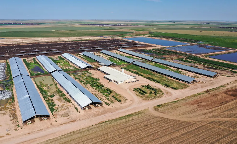 Rotary 80 and Double 50 parallel milking parlor. 1,400 cow holding pen with auto-crowd gate and sprinklers. Office, equipment room, restrooms, etc. 30,000 gallons water storage. Milk equipment includes 2 - Westfalia Kool Way chillers (new), 4 - Westfalia 6,000 gallon milk tanks, plate cooler, condensers, Gardner Denver & Ingersoll Rand air compressors, WaterTech softener system, Wheeler Hot water tanks, milk filtration, sanitation equipment, vacuum equipment, compressors, boiler, etc. Constructed in 2001 and expanded in 2018.