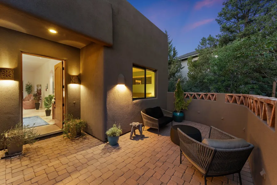 Entertainer's Dream! A beautiful home in West Sedona's quiet neighborhood of Mission Hills with views of Thunder Mountain featuring 2407 sf with 3 bedrooms, 3 baths built in 2014 - a meticulously maintained home with a modern open floor plan and many upgrades! Southwestern warmth meets Santa Fe style charm. Located only minutes from grocery stores, movie theatre, restaurants, Soldier's Pass trails, dog park, skate park. Large owner's suite with huge walk-in closet and luxurious custom cabinetry to organize your wardrobe. 11 foot ceilings, hand finished 8ft solid wood doors, fireplace in living room, gourmet kitchen with granite countertops and high end custom cabinets, center island and breakfast bar. Gorgeous outdoor seating areas with desert landscaping. No HOA - STR permitted.