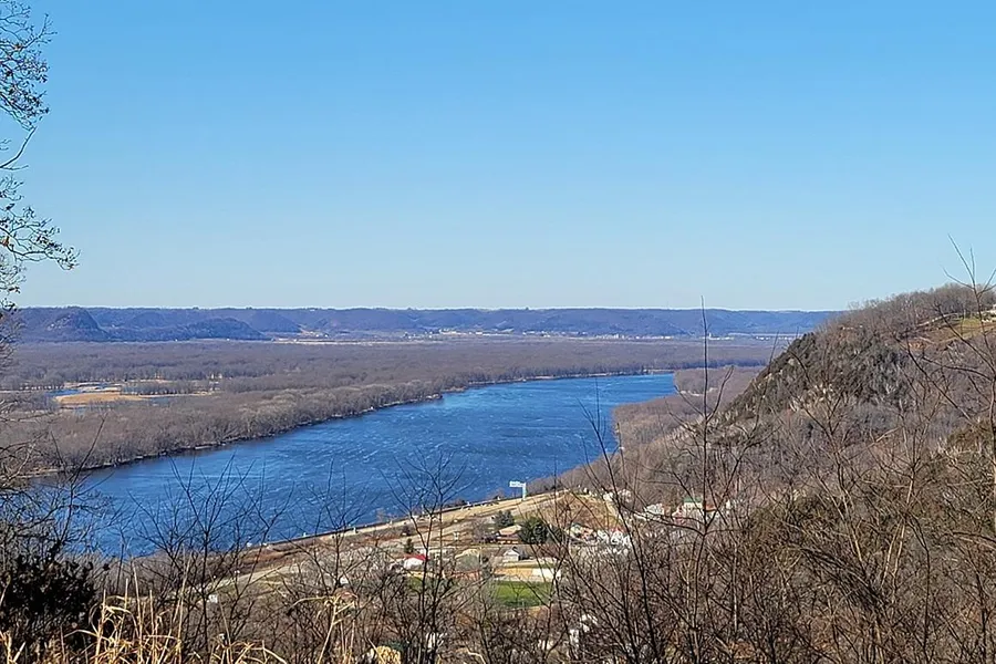 Mississippi River view real estate in SW Wisconsin with 3.16 secluded acres, breathtaking views of the water, the vast river valley and a quaint fishing village. Enjoy a very relaxing environment which is mesmerizing because of the incredible views. Access to the Mississippi River for boating, fishing and swimming is nearby. Be one of the fortunate few to own a breathtaking majestic Mississippi Riverview!