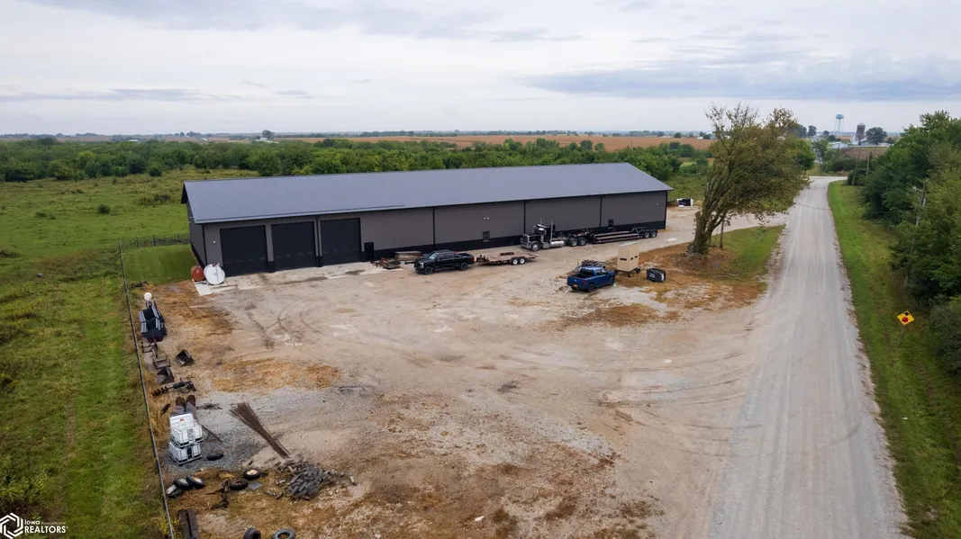 Versatile 60x200 shop with finished living quarters 4 miles north of Albia, Iowa, only 1/8 mile off Hwy 137 offering rare opportunity and income potential. Built in 2021, it is spray foam insulated, heated, and full concrete with 18-ft sidewalls and five automatic overhead doors—two 20x16 and three 14x16—making it ideal for equipment, vehicles, or commercial use. The main level provides approx. 1,400 sq ft of finished space including an office/kitchen, bathroom, storage, and a concrete safe room. The east half of the shop is currently leased at $1,800/month, offering immediate rental income. Upstairs, the 1,600 sq ft one-bedroom living quarters feature a spacious kitchen with a 4x8 insulated window that opens onto a future deck (18-ft header in place), creating a modern layout suitable for full-time living or weekend use. Combined with the office/storage, there is over 3,000 sq ft of finished interior space in addition to the main shop. With its rural setting, excellent access, secure safe room, rental income, and the ability to serve as farm headquarters, business base, or unique live/work setup, this property delivers a rare combination of function and opportunity.