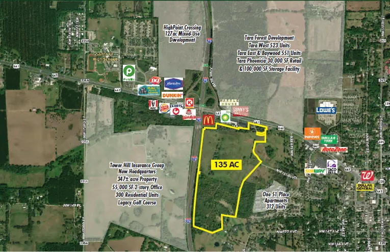 135 Ac Mixed-Use Development at the Southeast quadrant of I-75 and 441 in the City of Alachua.