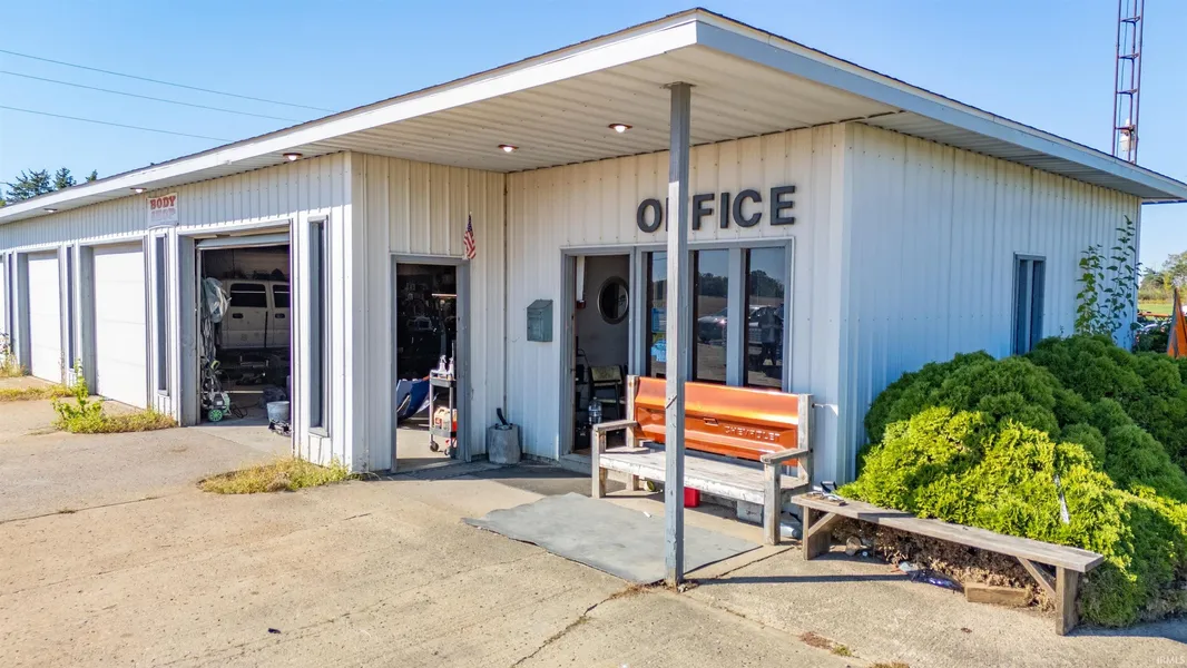 Your next business opportunity? This property features 2 buildings for a combined ~3500 Sq ft and nearly 4.5 acres. The front building has 2 office spaces, along with 4 garage door bays. The back building Also has 3 garage door bays, one room set up for car painting. Also includes a fully functioning 1 bedroom apartment with a full kitchen and bathroom.