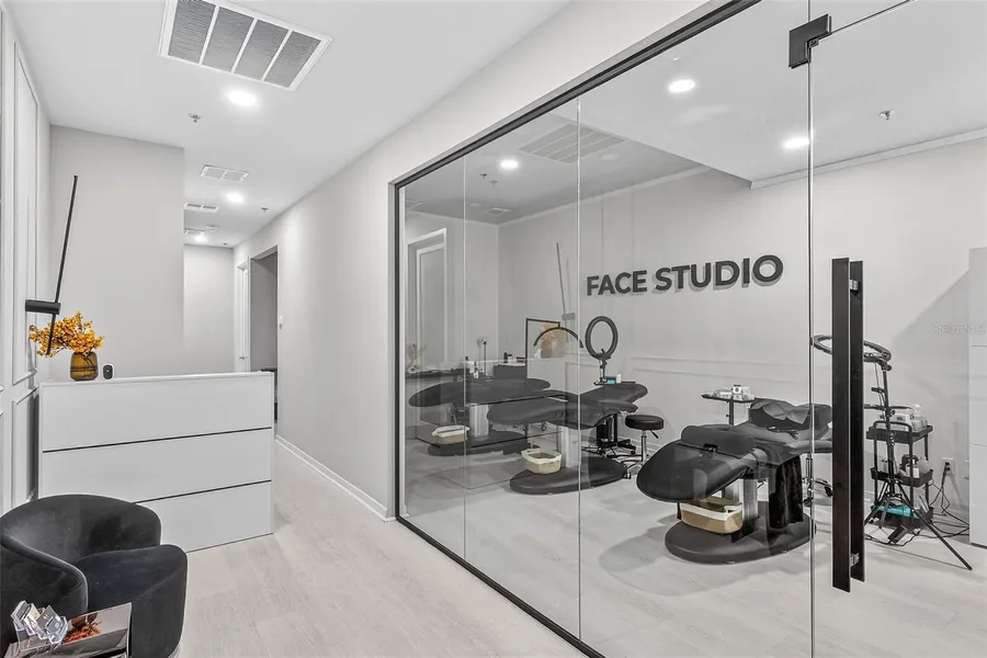 This 904sqf is a meticulously designed salon spa suite, features two private suites, and a open glass room a welcoming reception and waiting room area with a convenient kitchenette with mini fridge and hot water available, providing a fully functional and professional workspace. The location offers seamless connectivity, thanks to its proximity to major highways like the 429 and Florida's Turnpike, and it's just minutes away from Orlando's commercial hub, entertainment attractions, and various businesses and residential areas. The interior boasts a modern and efficient design with high ceilings, laminate floors, and tasteful accent wood paneling, complemented by cool light fixtures. Built