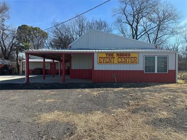 Versatile commercial building currently outfitted as an event center, offering excellent functionality and future potential. Zoned High Impact Heavy Industrial, this property features durable construction with metal siding, spray-foam insulation, and concrete floors. The building includes two bathrooms, dedicated office space and a make-shift kitchen. Electrical service is single-phase with a 400-amp panel, complemented by updated lighting throughout. Comfort is ensured with new HVAC and mini-split systems. Additional Storage Shed stays with the property. All tables, chairs, booths, stainless-steel sink, and security system remain, making this a turnkey opportunity for continued event use or easy adaptation to other commercial or industrial needs. Ample potential for a variety of business operations. Easy access to Hwy 75.