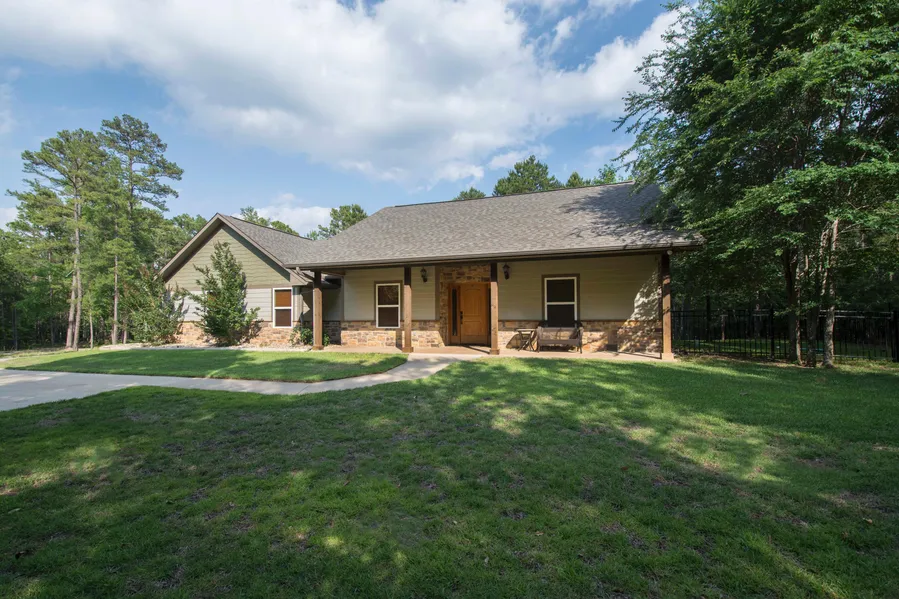 The perfect balance of country and comfort. This very open 3 bedroom, 2 bath, 3 car garage home has something for everyone. A fully equipped kitchen with stainless gas appliances, granite countertops, a cozy stone fireplace, crown molding and tray ceilings accent throughout. The large master has a great bathroom with separate vanities and a deep soaking tub. Large 2 bay door workshop adjacent to the home. Fenced backyard with nice sized covered porch equipped with ceiling fans for outdoor entertaining. All of this located on over 6 beautifully wooded acres. An absolute must see!