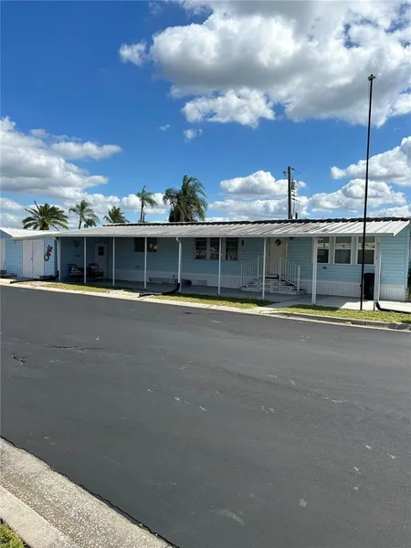 This wonderful corner lot mobile home with 2 beds and 2 baths sits right across the amenities center of the community. This 55+ community sits right off US301 and has quick access to I-75, the Ellenton Outlet Mall, shops and waterfront restaurants. The home is being sold turnkey furnished and has 2 storage sheds attached! One is a shed/workshop and the other is a regular storage shed. Updated appliances are in the kitchen with a propane hookup to the gas stove! Plenty of parking in the fully covered driveway for golf carts and other toys as well. Come check out this laid back gem to enjoy and live in paradise while it lasts!