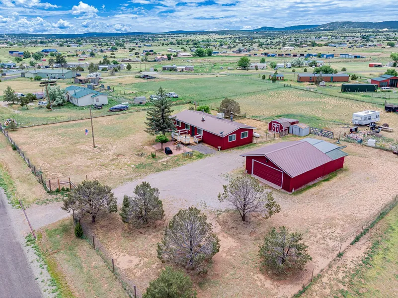 Well-maintained and clean 3-bedroom, 2-bath home! Fresh exterior paint completed in June 2025 (deck is being finished up with paint also.) Enjoy the convenience of paved road access and plenty of space for your livestock, pets, and hobbies. The property is fully fenced, with an additional fenced pasture or pen in the backyard; perfect for turning animals out or even riding horses around. Features include a 24x24 insulated detached garage and an 8x10 hay or equipment shed that can double as a stall or animal shelter. A versatile 12x20 insulated room (a converted greenhouse) with windows and skylights adds even more flexibility. There's plenty of space for parking trailers, RVs, and toys. Conveniently located just 10 minutes from Edgewood and 20 minutes from Albuquerque!