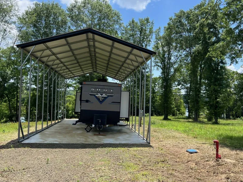 The seller has done all the work for you! This waterfront lot #16, in Barrett's Place Subdivision on San Miguel is set up and ready to go. With this 2021 Puma travel trailer that has three slide outs, you are ready to go. Open living room with recliners, Couch, fireplace and big windows overlooking the shoreline. The kitchen has a great meal prep island and full size refrigerator. Primary private bedroom with stackable washer dryer set up and a bunk room for the kids. Nice bathroom set as well. The lot has a concrete slab in place with a metal carport cover, sewer, and water. Just bring your personal items and get ready to relax and fish! The subdivision offers a private boat launch for lot owners and is in a low traffic area. The 0.37 acre +/- lot has a gentle slope to the shoreline. You are just minutes from the town conveniences of Zwolle. Great vacation rental when you're not using as well.