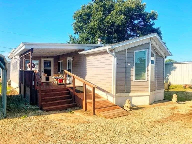 This 2 bedroom, 2 bath mobile home is situated on a permanent foundation and on a double lot. It features a spacious master suite complete with an ensuite bathroom and a generous closet as well as an additional bedroom & full bath. Convenient 1-car detached garage for your vehicle or additional storage needs. There is a covered front deck and a rear deck that offer a perfect spot for outdoor gatherings.