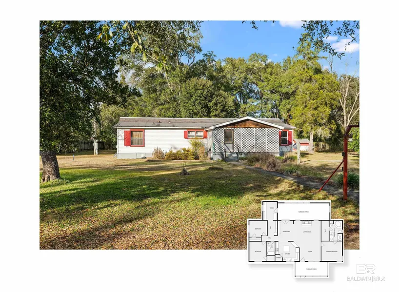 Great fixer-upper or investment opportunity. This AS-IS WHERE IS 3 bedroom, 2 bath double wide offers 1,620 sq ft of living space and sits on an unzoned .83 acre lot providing the possibility of adding a second dwelling to the lot with income potential. Conveniently located just minutes from OWA, 20 minutes to the beach, and a 20 minute drive to Florida. This property features a large 33' x 10' enclosed rear porch, 20' x 8' covered front porch, hurricane anchors to slab, shall shed, mature blackberry bushes, and a chicken coop. Whether your looking to renovate or invest, this property as so much potential. Bring all offers! Buyer to verify all information during due diligence.