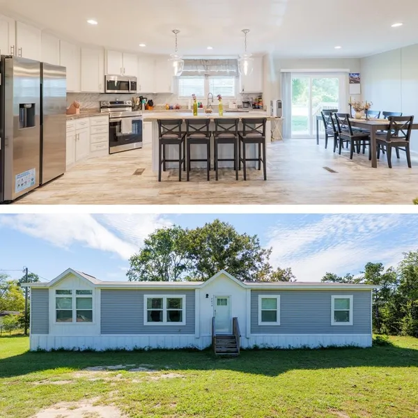 Like-new 2024 Clayton Home (Stella Plan) on a 1-acre fenced lot! This 3BR/2BA home offers a bright, modern interior with a beautiful neutral color scheme. Light gray wood-look LVP flooring flows throughout—no carpet! The spacious kitchen features white cabinetry, abundant counter space, a center island, and matching appliances (refrigerator, stove, dishwasher, and microwave all included). The master suite boasts an oversized walk-in closet with shelving, plus a luxurious bath with double sinks, a soaking tub, and a tiled walk-in shower. Bedrooms 2 and 3 also include walk-in closets and share a conveniently located guest bath. The laundry room offers excellent storage with built-in shelving, plus a mudroom area with a bench, desk, and utility sink. Outdoors, enjoy a fully fenced acre with plenty of space for kids, pets, and even your own grape vines, along with a smaller fenced section di...