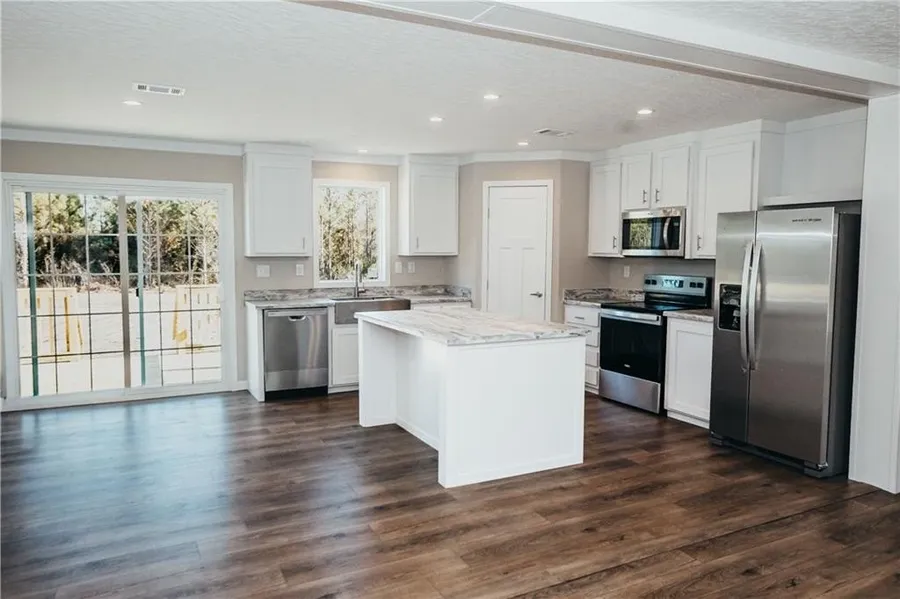 Sitting on 3 unrestricted acres, this home is a true showstopper. Step inside to upgraded finished drywall, modern touches, and an open layout that sets this 4-bedroom, 2-bath home apart. The kitchen offers tons of cabinet space, a large pantry, and plenty of natural light. A den/flex space makes entertaining a breeze or provides extra room to fit your lifestyle. The oversized laundry room adds function and storage, while the primary suite features a freestanding soaking tub and tiled walk-in shower your own private retreat with a large walk in closet. Enjoy peaceful country living with the freedom of unrestricted acreage, all just minutes from town.
