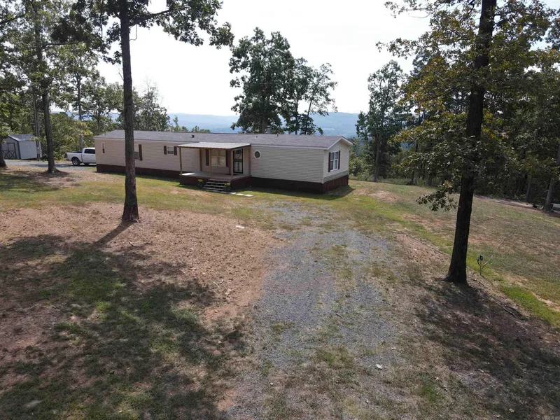 Charming 3-bed, 2-bath mobile home on 20+/- scenic acres in the heart of the Ozarks! This 1,336 sq ft home features a spacious kitchen/ dining, open living room with a cozy wood-burning fireplace, and a functional floor plan. The primary suite includes a private bath with a soaking tub, walk-in shower, and large walk-in closet. Both additional bedrooms also offer walk-in closets. Step out onto the covered back porch and soak in the mountain views and peaceful evenings under dark, star-filled skies. The gently rolling land offers excellent space for gardening, hobby farming, or simply relaxing in nature. Wildlife is abundant—deer, turkey, bear, and small game roam the area. High-speed fiber internet makes remote work, streaming, and staying connected a breeze. County road frontage provides easy access. Located just 10 minutes from Marshall for supplies and local charm, 20–25 minutes from the Buffalo National River, where you can enjoy fishing, kayaking, canoeing, hiking, and numerous outdoor activities. 1.5 hours to Branson, MO. for entertainment, and shopping. A perfect full-time home or weekend getaway! Come make your vision a reality in the heart of the Ozark Mountains!!