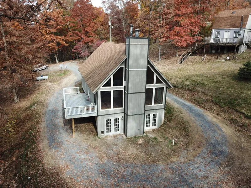 This completely renovated and modern cabin is located in the heart of the WV Mountains in a quiet gated community! Far from the hustle and bustle of the city is where you will find this trendy cabin and bonus guest cottage. The home is situated on 5+ acres nestled perfectly into the woods and providing a sense of quiet seclusion. When you enter this home, the massive stone fireplace will steal your attention, a beautiful statement piece that is further complimented by the vaulted ceilings and massive windows. Beautiful wood features give this modern home a rustic yet industrial feel and makes for a nice blend of styles. With an impressive 5 bedrooms and 3 full bathrooms your group/family can enjoy a vacation get away without compromising luxury and space! The main level boasts an expansive 1,880 square feet with an additional 1,344 sq. feet in the fully finished basement. You will be ple...