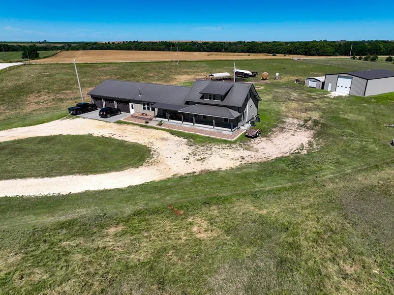 Located just three miles northwest of Beloit, Kansas, this 7.61-acre property offers a thoughtfully renovated farmhouse with modern amenities, open living spaces, and substantial outbuildings for a variety of uses. The home features over 3,000 finished square feet of living area, much of which has undergone recent updates to enhance both function and efficiency. The layout includes five bedrooms and three bathrooms, accommodating a range of household sizes or needs for extra space.The property’s approach begins with a rocked circle drive, providing convenient vehicle access to both the attached garage and the main entrance of the home. The exterior of the residence is complemented by a covered front porch, offering a sheltered entryway, and a recently constructed 20’ x 20’ covered deck at the back of the home, creating an additional outdoor living area that can be enjoyed in a variety of...