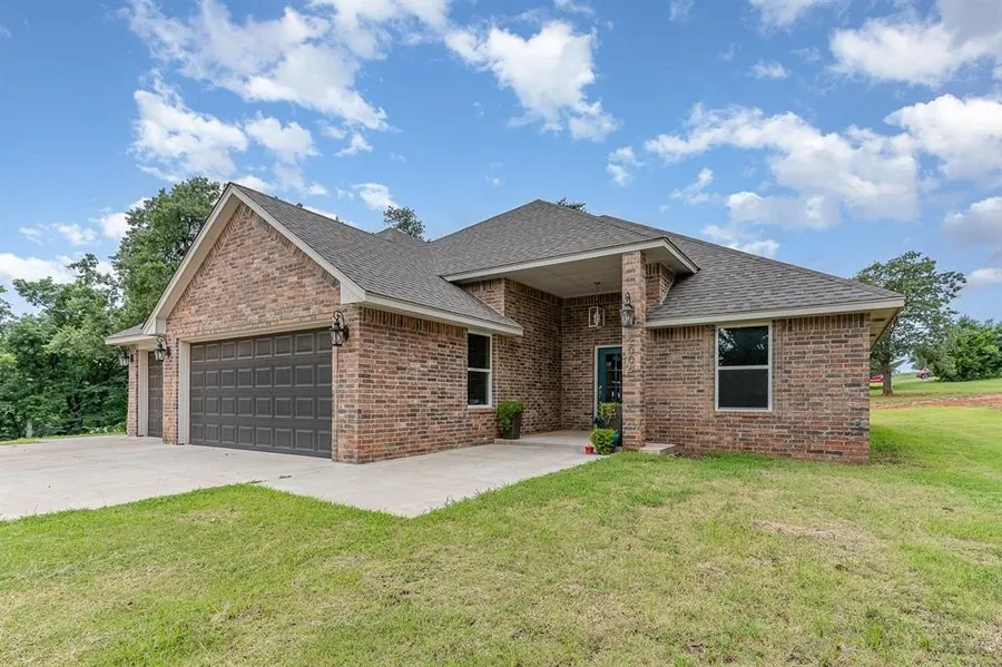 The 4 bedroom home sits on a 1.33 acre lot in the Greys Harbor addition in Blanchard OK! Only 4 miles from Winter Creek Golf Club. 1,816 FT² - Modern Farmhouse design. Built in 2022. Long concrete drive. Coved front porch. Large covered patio with extended concrete. Wood look tile thoughout the home. Open living space with gas fireplace (storage cabinets underneath the fireplace). Dream kitchen with Quartz countertops, large island, farm sink, large walk-in pantry, lots of storage space, built-in pullouts, wine cooler, built-in cook top, oven, & microwave. Large master suite. Master bath with dual vanities, walk-in shower with door, soaker tub, privacy toilet, & lots of cabinet space. Huge master closet with lots of built-in shelving, 2 built-in dressers, vanity, & laundry room access. Large cabinets in the hallway. 2nd and 3rd bed with built-ins in the closets. Office with built-in des...