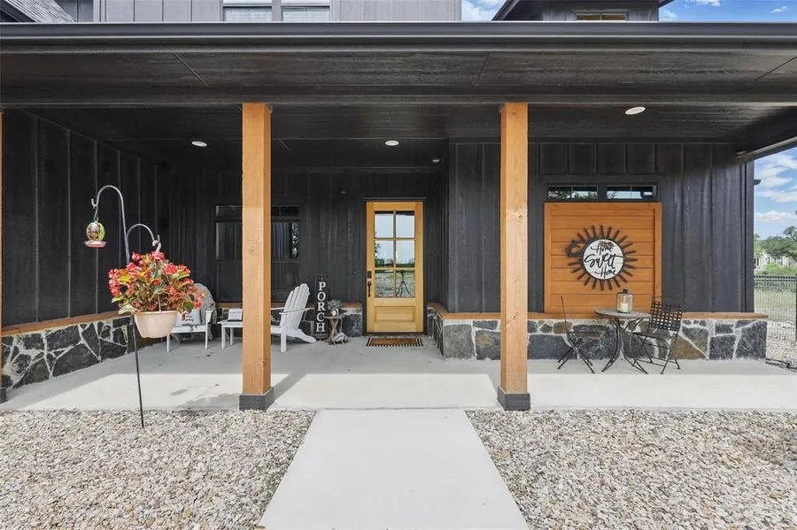 ***Santa came early with the best kind of surprise! A new price, new fence, and the gift of flexibility. Lock in this home now and move later while your expenses are covered. The sellers are building their next home and can lease back short or long term, giving you the freedom to plan your move and still enjoy the holidays!*** A true custom modern farmhouse positioned to take in the long Hill Country views seen in Taylor Sheridan's 1883, but here they are quiet, private, and yours. Outdoor living delivers day-to-day joy with a resort pool and spa with chiller, wraparound patio with heaters, speakers, and custom mosquito curtains so time outside is not limited by weather or season. The 9 foot bridge leads to a foam encapsulated 27x20 workshop set apart just enough to be functional without interrupting the land. And the land matters here. Beyond the pool and workshop, the property opens into natural space with hidden walking trails, small overlooks, and room to create your own garden, firepit terrace, or expanded outdoor living. Space to breathe. Room to imagine more. Inside, the kitchen anchors the home with a 5x8 quartz island, Wolf rangetop, high end appliances, and a pass through window to the patio. The primary suite opens directly to the pool with a spa bath and dual rain shower that feels like a retreat. Upstairs, a hidden lounge behind a bookshelf functions as a private escape, fourth bedroom, media space, or studio. Full foam insulation including garage, tiled pet shower, Cat 6 wiring, buried propane tank, advanced water system, remote shades, and a reinforced storm shelter built into the garage. Full list of upgrades available. Not cookie cutter. Not basic. For the buyer who knows and appreciates the difference.