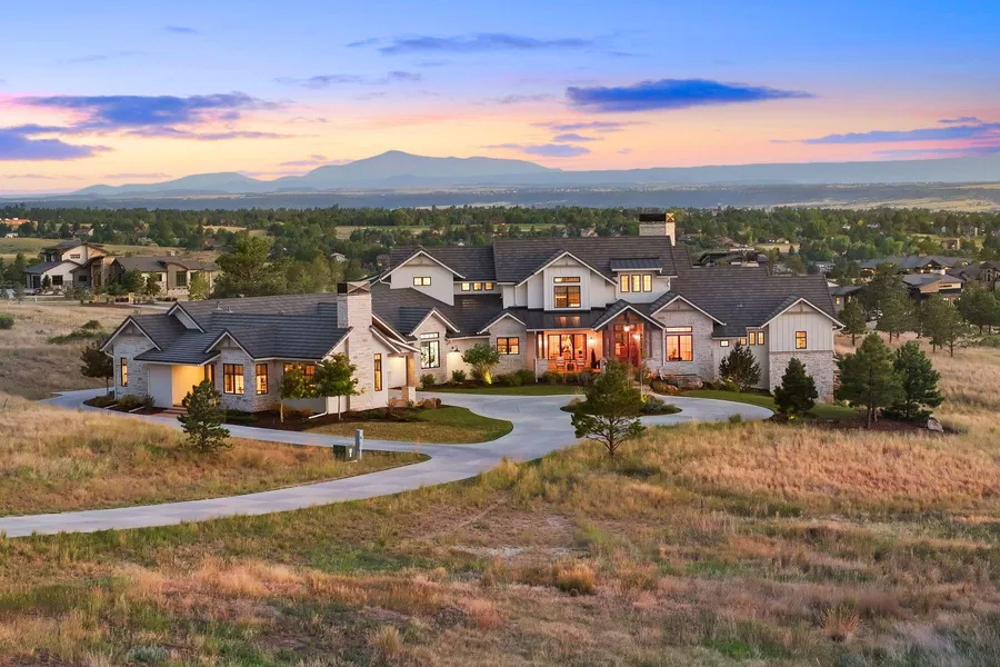 Beyond the pinnacle of luxury a jewel in the crown of Colorado Golf Club. From the grand porte-cochere and circular driveway to the spectacular saltwater pool and expansive deck areas, every element of this home reflects modern farmhouse sophistication and unparalleled comfort. Architecturally exquisite and surrounded by breathtaking views of Pikes Peak and the Rocky Mountains, this custom home epitomizes quality and design excellence. The property includes a guest house with main-floor living, a beautiful kitchen, bedroom, bathroom, and private garageideal for guests or extended family. The great room features 22' ceilings with natural wood beams, an oversized fireplace with custom metalwork, and two folding doors that open to the covered patio. The kitchen is a chefs dream, featuring a massive island with a quartzite countertop and Thermador appliances. The adjacent eating nook offers views of the pool and Pikes Peak, while the spacious walk-in pantry and coffee bar provide ample storage and convenience. The primary suite features a stone fireplace, walk-out to the patio, and a spa-like bath. The suite also includes a large walk-in closet, with custom cabinetry and is attached to the laundry room. Upstairs, three secondary bedrooms offer similar levels of comfort and style. Designed for the hustle of everyday life, the spacious mudroom offers style and organization for every busy household. Downstairs, the walk-out lower level provides a versatile rec room, featuring a well-appointed wet bar, game table areas, and ample storage, ensuring practicality and comfort. The centerpiece of outdoor living is the saltwater, offering a resort-like experience. Framed by unparalleled mountain views, the spa, expansive pool deck, and outdoor fire pit create the perfect setting for relaxation and entertainment. With its blend of exceptional indoor and outdoor amenities, this home offers an unparalleled living experience within the prestigious Colorado Golf Club.
