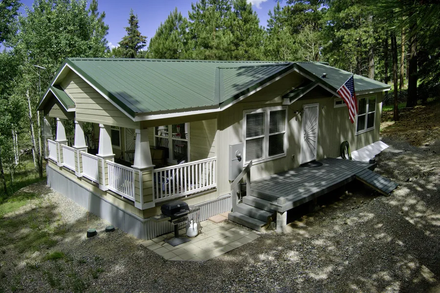 This custom Karsten Modular home sits on a permanent foundation in beautiful Thompson Ridge Estates. Upgrades include increased insulation, increased snow load specifications, and an expanded bedroom and bathroom. Open living area and kitchen lead out to the covered deck with meadow views. two good sized bedrooms with full size baths complete this 1188 SF mountain getaway. Generac back up power if there is an outage. Carport with an attached shop area for the projects and to keep the toys out ot the weather. This home has all the modern features you are looking for smack dab in the middle of the Jemez Mountains. Weekend getaway, full time residence and no restrictions against short term rentals. Very few options in the Jemez for this quality, at this price point. See it soon!