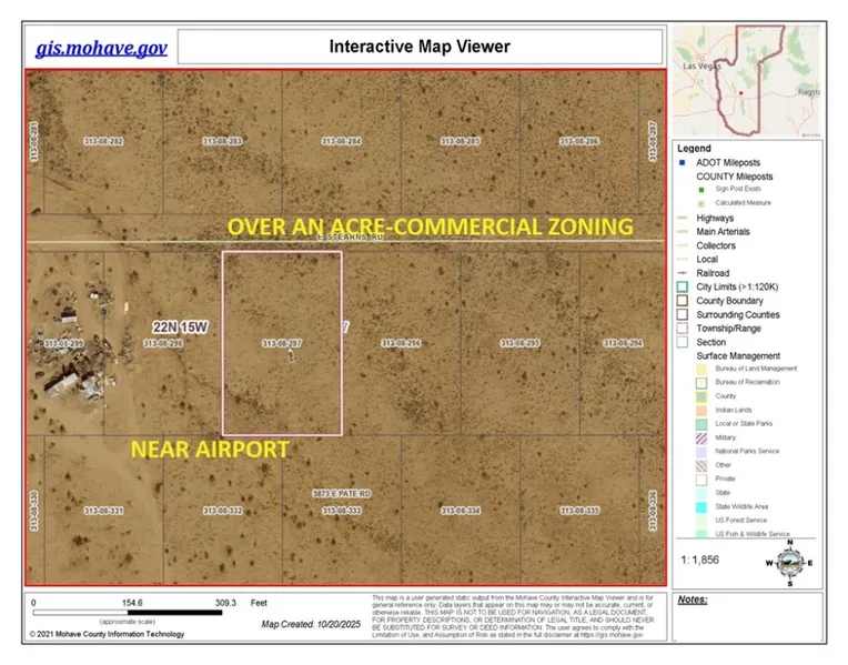 Commercial Zoned (M) 1+ acre parcel in the Mohave Airport area of Kingman. This 1.33 acre lot benefits from low yearly taxes which makes it easy to hang on to for future investment opportunities. Being zoned Commercial, makes it an excellent fit for a variety of industrial uses. Mohave County can help with zoning requirements to see if it fits your needs. BLM land is located close by. Kingman is only 45 minutes from Bullhead City/Laughlin area for all your entertainment. The Colorado river offers water activities such as swimming, fishing and boating. Take a walk on this piece of AZ land and see if it is the one for you, awaiting your footsteps!