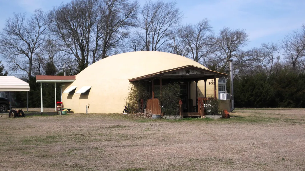 A modern, well-designed monolithic dome sitting on 12.48 acres +/- in quiet, rural Whitewright, TX a place where you can grow your kids and escape from the world, yet keep the conveniences of the city within 45 minutes travel. An all native cedar / pecan interior and approximately 651 square feet of loft makes this home amazingly spacious despite its small exterior footprint. Enjoy the quiet solitude with a babbling creek at the eastern edge of the property, a small pond and plenty of room for activities, a small ranch or farm, the property also features a 1,792 square foot , partially finished-out pole barn with workshop and ample storage for canned/dry goods in a separate storeroom. For general information on the general benefits of monolithic homes ownership see: monolithic.org/benefits/