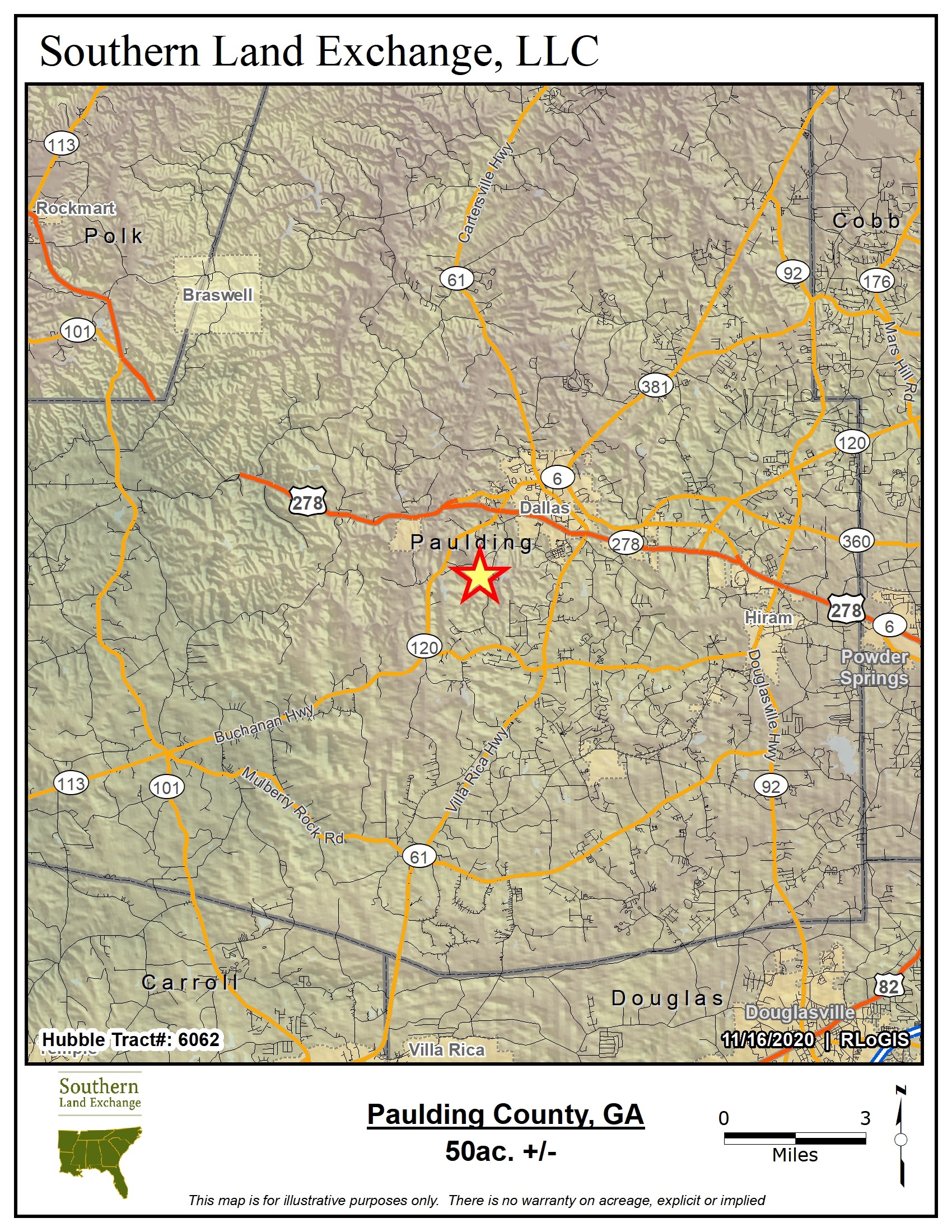 Located 3 miles southwest of downtown Dallas and 16 miles north of Villa Rica and Interstate 20. This well managed tract of land offers an affordable rural residential possibility. Easy access to US HWY 278 and Hiram Ga., plenty of restaurants and shopping available.