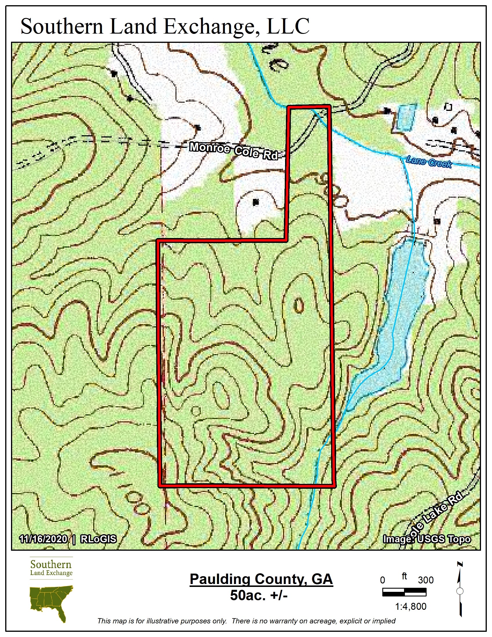 From the intersection of GA HWY 120 and US HWY 278 proceed south on GA HWY 120 for 0.10 miles, turn left on Cole Lake Road, proceed 1 mile, turn right on Monroe Cole Road. Proceed 0.45 miles and the tract will be located on the left.