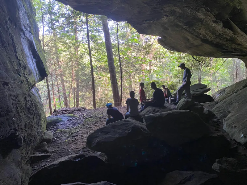 The property features all that is popular in the RRG. It encompasses the watershed of Hall Sink Branch below the cliff lines and over a mile of cliff lines including ideal climbing areas as well as rock houses and natural features. There is a large cave on the property with a small waterfall inside as well as numerous natural sinks and springs. The original settlers did not sell out when land was being purchased by the federal government for Daniel Boone National Forest as they had a thriving "business". The moonshine still remains rusted but still set-up in a cavern at the cliff line. Hall Sink Branch flows through the property and includes several small waterfalls.