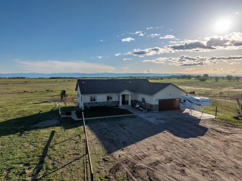 This exquisite 4060 sqft custom-built residence offers breathtaking views of the Wind River and Owl Creek Mountains. As you arrive, a privacy gate welcomes you into a private sanctuary spanning 60 acres, complete with water rights and robust fencing to securely house your agricultural animals and equipment.The property features a spacious shop and multiple steel pipe fenced stalls.