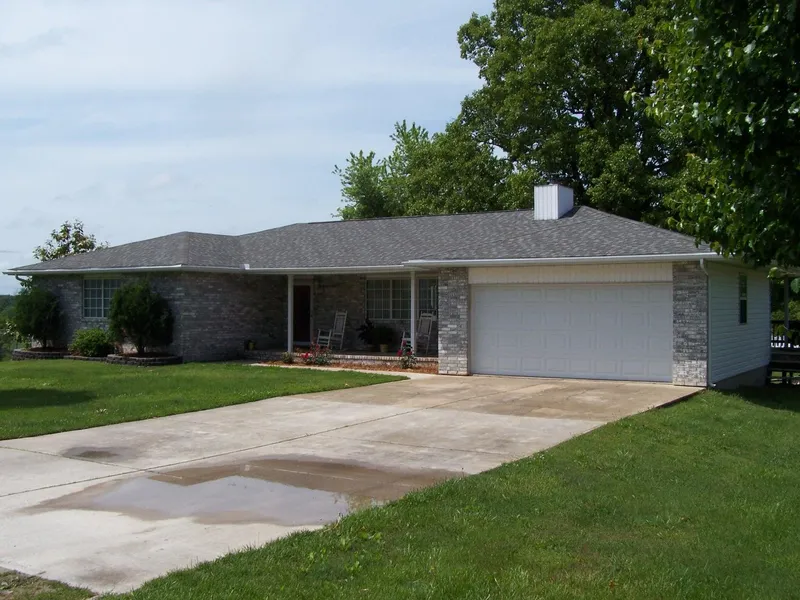 Brief Description: AN IMMACULATE HOME NESTLED ON A DOUBLE LOT. OUTSIDE CITY LIMITS ! ! YOUR OWN WELL AND SEPTIC. ELECTRIC IS BURIED UNDERGROUND.....No Zoning and No Permits. This area has upscale homes with adjoining lots that have many mature trees and woods. So much privacy and "that feel of living in the country". 1/2 mile to Ava. 4 Bedrooms , 3 Baths, 3 Garages and 1 Carport . Full Finished Basement with Kitchenette. Wood Burning Brick Fireplace. Detached Nice Workshop / Carport.....$219,900