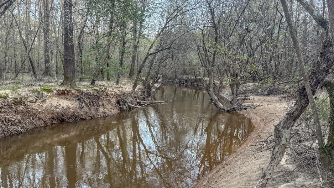Escape to your own piece of the outdoors with this 10 acre hunting property in East Texas. A creek meanders along the back boundary, creating a natural water source for wildlife. The land offers a mix of high ground perfect for camping or building a small off-grid cabin.