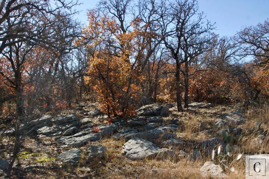 Tree Cover--Heavily wooded; live oak, post oak, red oak, mesquite, cedar