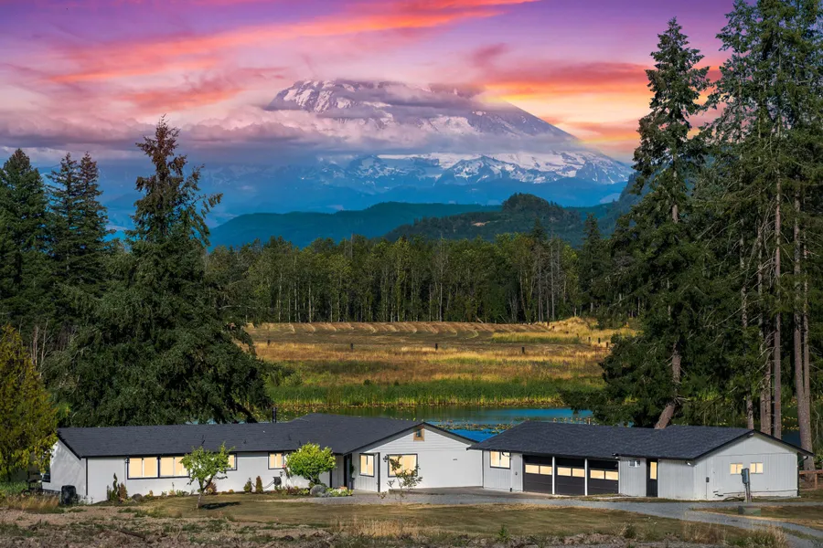 84 ac of Pasture timber & lake, 2328 Sq Ft 1 story fully remodeled home with 3 bdrms & 1.75 bths . Great room with views over your private lake, of Mt Rainier & foothills. Open concept kitchen with access to the huge patio & deck 3 car garage with shop, meet locker & Guest Apt with 2 bdrms, 1 bthrm & kitchenette. Private lake with dock, Bass fishing included. Fenced with cross fencing. Power setup for Multiple RV parking. Early 1900s home stead with 2 Bdrms & outbuilding. Fire pit. 5 tax parcels.