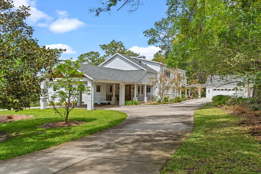 Elegant garden estate in Elysium, Mount Dora. Masterfully constructed by Keith Fields, this refined four-bedroom, four-bath residence spans 3,655 square feet and is gracefully sited on more than one acre in the esteemed community of Elysium. Designed with an emphasis on privacy, flow and connection to nature, the home invites effortless living with curated details throughout. The first-floor primary suite offers a tranquil retreat, featuring wood flooring, dual vanities, a walk-in shower and French doors that open to a covered porch overlooking sculpted gardens and twin waterfalls. Soaring ceilings and abundant Anderson windows fill the open living space with natural light, framing the gas fireplace and seamlessly linking the interior to its verdant surroundings. The kitchen is thoughtfully appointed with new Thermador appliances, including an induction cooktop, and flows into the dinette and formal dining area, ideal for everyday living and elevated entertaining. A versatile office or den, guest bedroom and full guest bath complete the main level. Upstairs, two additional bedrooms feature private en-suite baths and are complemented by a spacious loft and reading nook. A detached three-car garage enhances the estate's functionality, while the lush grounds offer a rare sense of serenity. In Mount Dora, celebrated for its lakeside charm, artistic energy and boutique culture, this residence is a singular opportunity to own a timeless garden estate in one of Central Florida's desirable enclaves. Schedule your private tour today.