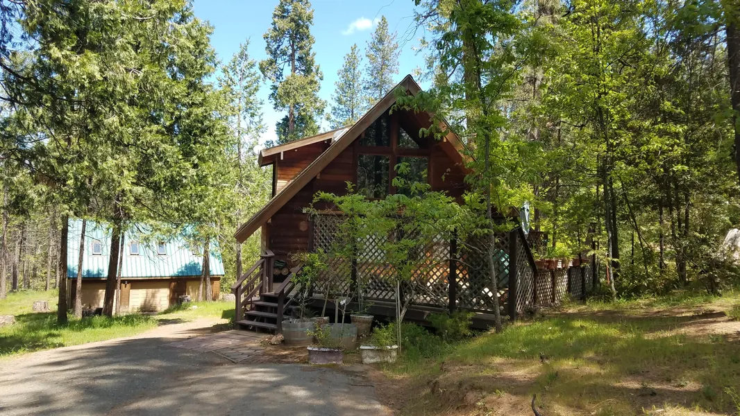BEAUTIFUL 2 STORY LINDAL CEDAR HOME Built with kiln dried western red cedar, this 1887 sq ft cabin is located on a large corner lot. Lots of extra space for a large family or just as a weekend get away. Main floor has 2 bedrooms and a full bath and a large utility/laundry area. Upstairs you will find a large Master bedroom with a sizable window and a generous size Master bath with double sink. Lovely finish cedar throughout gives this cabin a real country feel. Central heat and air in ADDITION to 2 wood stoves (earth stove) will keep you warm and cozy if you happen to get a little snow. Easy access year round. Quiet mountain community of Mariposa Pines. But that's not all, there is a one car attached garage and storage underneath the main structure. The big bonus is a 768 sq ft detached 2 car garage with a finished upstairs that will be perfect as a large office or craft/activity room. S...