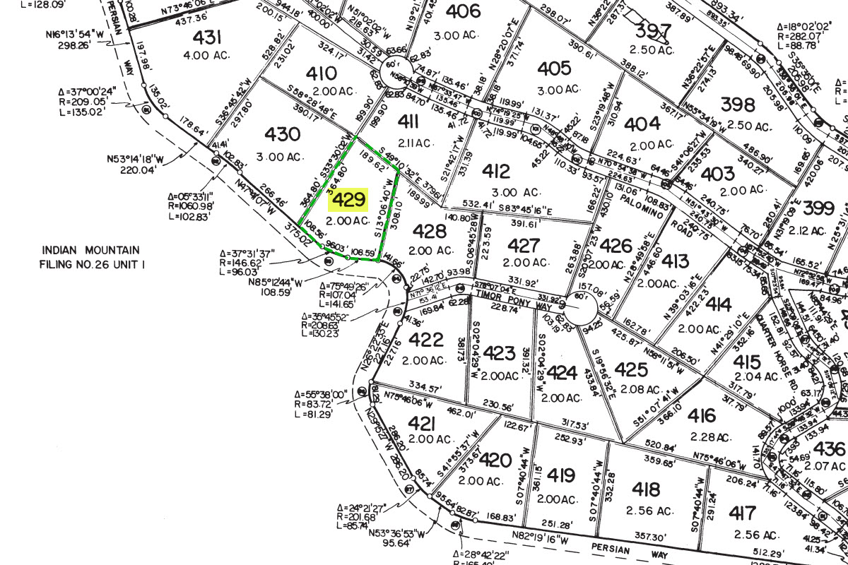 LEGAL DESCRIPTION: Lot 429, Indian Mountain Filing No. 26, Unit 3, County of Park, State of Colorado.