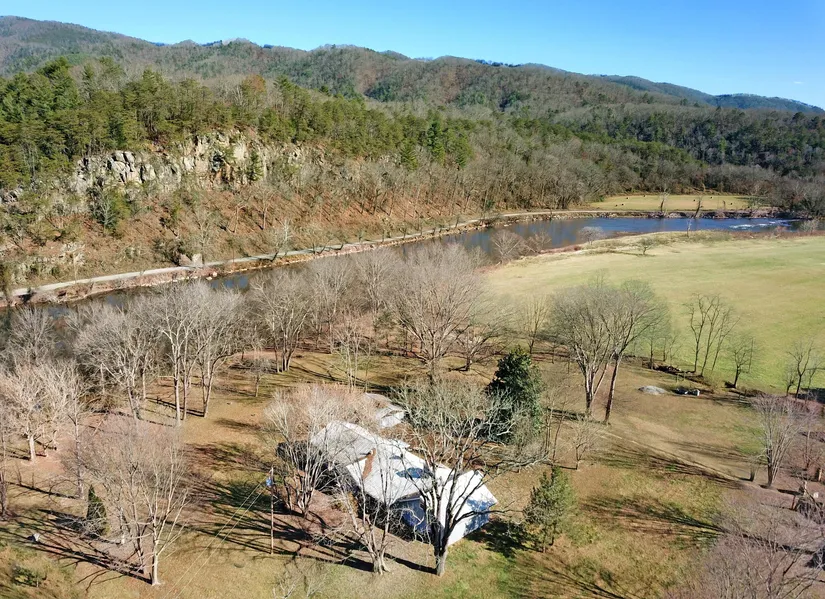 Picturesque French Broad riverfront setting with large trees and sweeping mountain views. You can directly put-in for kayaking, rafting and fishing! Adjoins National Forest and less than 10 minutes outside the quaint town of Hot Springs. Over 2 acres with an amazing river frontage to enjoy! 2 BR 2 BA river house. Great room with country kitchen. Primary BR suite with BA and large whirlpool tub. Large screen Porch over looking river. Lots of space to expand and for outdoor living. Tucked away yet with easy access.