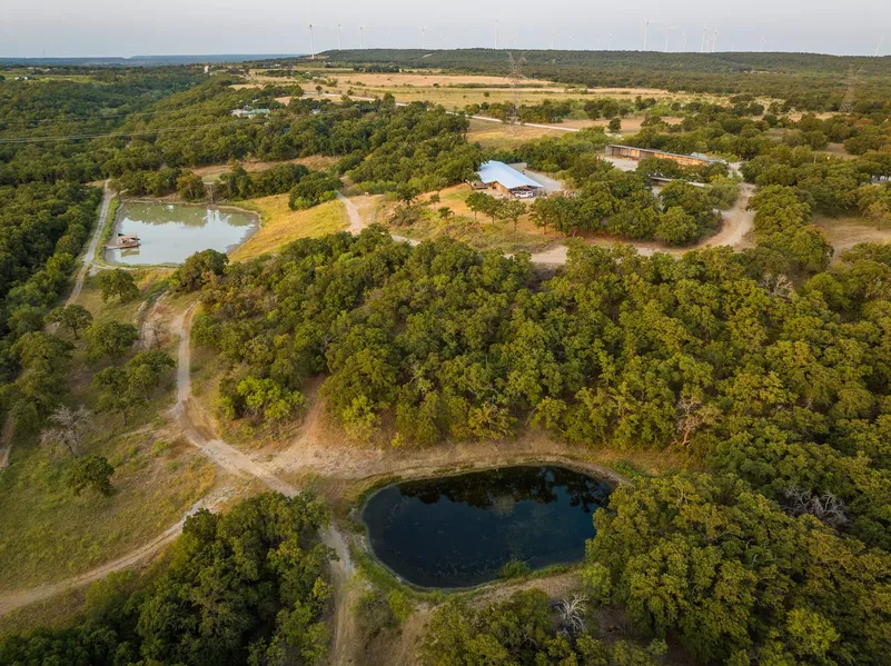 Water Features: A small lake, built in 2017, is located below the house. It covers approximately 1.3 surface acres and is believed to be 30 feet deep. The lake has two aerators, benefiting the fisheries and maintaining optimal water temperature. Three additional stock tanks are in good condition. One of these, Serenity Pond, is stocked with fish and attracts resident wood ducks. All four bodies of water can be kept full with water from a well.