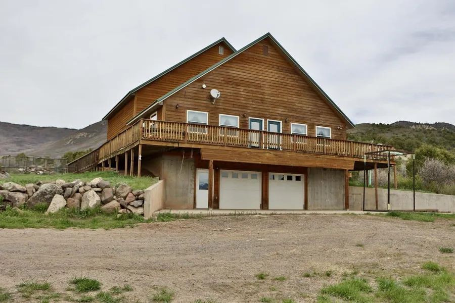 Colorado mountain home on 54 acres for sale in Collbran, Colorado borders BLM land with spectacular views in a quiet, year-round accessible location. Located just off Kimball Creek road, the property has a large shop building, 3,200 square foot main home with basement with two garage doors, two hunting blinds, Kimball Creek running through the property, and stunning views of the Northern slope of the Grand Mesa. Historically used as a hunting lodge, there are 5 conforming bedrooms, 2 large bathrooms, an office, a large kitchen, dining & living room, walk around porch, and large 2,000 square foot unfinished basement with meat processing area, parking for two cars and plenty of room for storage. A drilled water well supplies plenty of domestic water for the main home, and a modern forced air heating and cooling system for the...