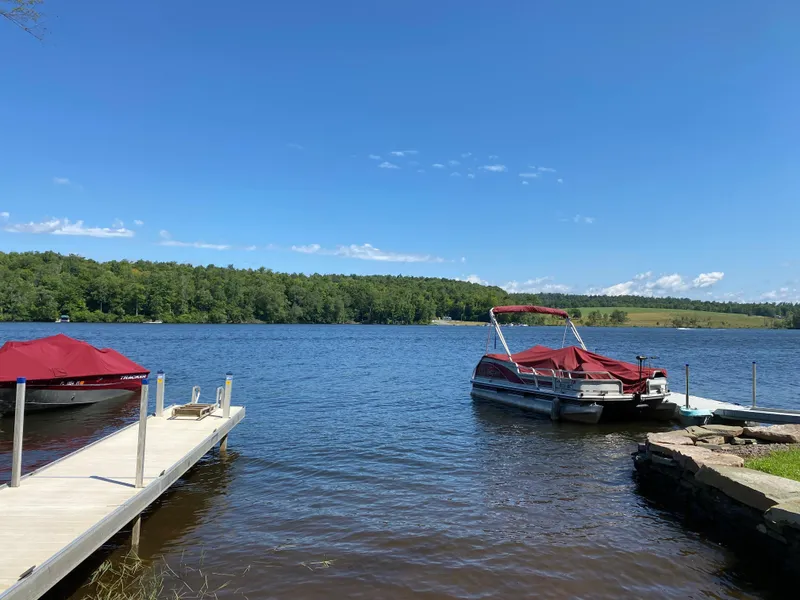 MOUNTAIN LAKE HOME - POWERBOAT LAKE - Very attractive 3 bedroom, 1.5 bath four season retreat! Easy access to dock and boat slip on 200 acre powerboat lake. House designed for entertaining and easy maintenance! Features spacious living area with beamed ceiling and fireplace, country kitchen with dining area, enclosed porch with hot tub, sun deck with views of the lake, and garage. Clean, dry lower level offering room for expansion!
