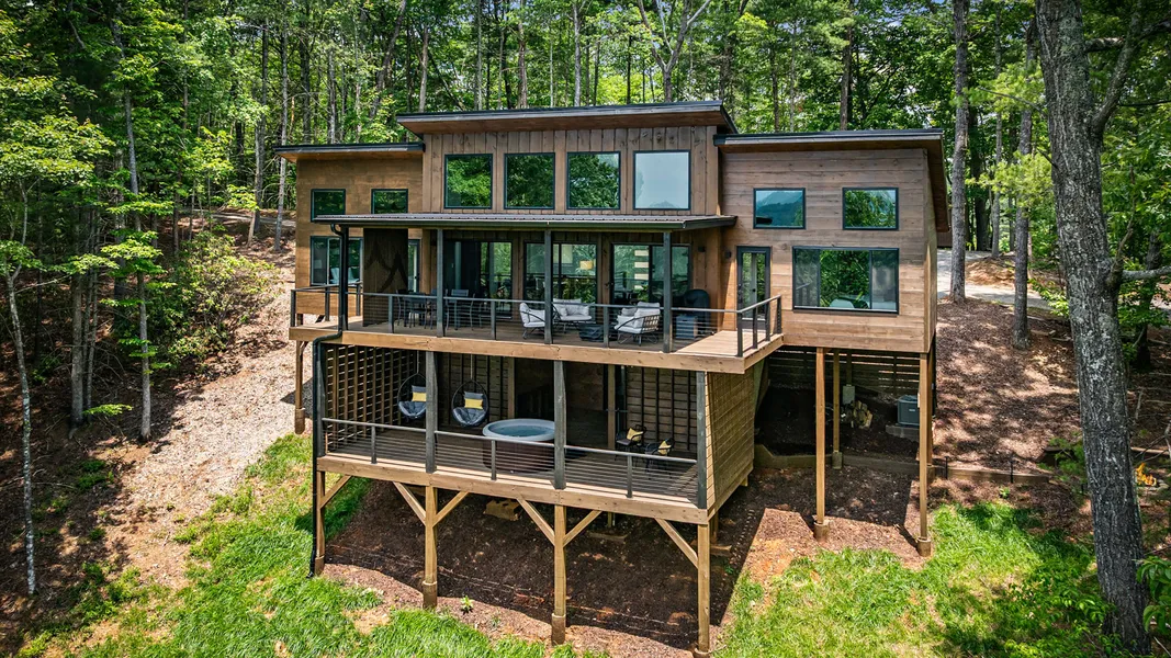 Welcome to your turnkey Mountain Modern Retreat in the heart of the sought-after Cherry Log Mountain neighborhood, perfectly nestled between Blue Ridge and Ellijay*just 12 minutes to either town. This Custom Designed, Built and Professionally Decorated two bedroom/ two and a half bathroom home offers breathtaking mountain views and direct access to the Benton MacKaye Trail, all while delivering the ultimate in comfort, style, and convenience. Inside, you'll find Quartzite Countertops, a well-stocked custom kitchen with new appliances, tiled bathrooms with barn-style glass doors, and a stunning live-edge dining table to enjoy entertaining. Beautiful Large windows and casement windows bring in natural light and Big Mountain View from each room, while memory foam mattresses and thoughtful furnishings create an exceptional experience. The open-concept layout features a large den and dining a...
