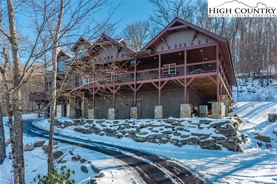 Welcome to Sugar Mountain. This beautifully designed custom home offers the perfect setting for a family mountain retreat or ski getaway. Upon entering, you are immediately welcomed by rich black walnut flooring that flows throughout the home and sets a warm, refined tone. The formal dining area opens into a spacious family room featuring vaulted ceilings, a striking stone fireplace, multiple gathering areas, and long range mountain views. The updated kitchen features new cabinetry, new appliances including a 2 drawer dishwasher, Bosch gas stove and convection microwave creating a chef's dream kitchen. This inviting space ideal for entertaining and everyday living. The main level includes two bedrooms, each with access to a full bath, along with flexible office space that could be used as an additional bedroom. One staircase leads to a loft with additional office space and a play or gam...
