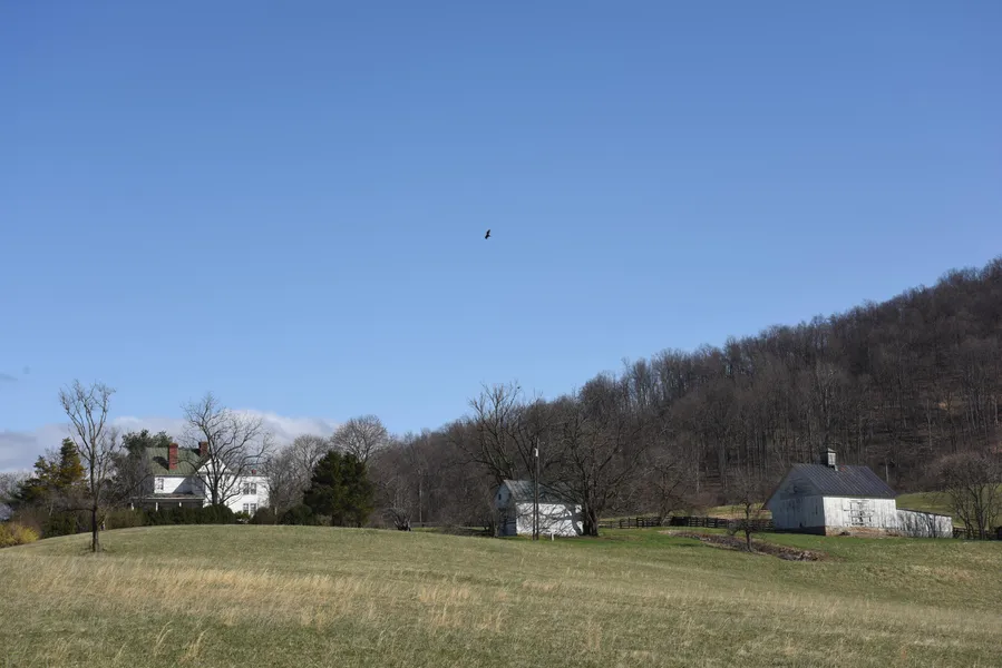 The property occupies the western slope of Hickerson Mountain and the valley along Zachary Taylor Highway about one mile south of the village of Flint Hill. Approximately half of the land is open and gently rolling. The balance is steeper mountain land that includes the summit of Hickerson Mountain at about 1,300 feet in elevation. The entire farm has spectacular views in all directions but the vistas from atop the mountain are among the best in Virginia.