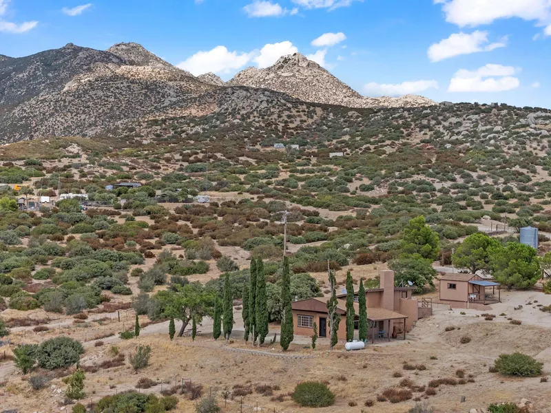 Discover serenity and charm in this inviting 1-bedroom, 1-bathroom home nestled on 5.15+/- fully fenced acres in the picturesque San Diego Mountains. This well-maintained single-level home features a spacious open-concept layout, with a large living room enhanced by a beautiful gas stove, ideal for both entertaining and relaxation.