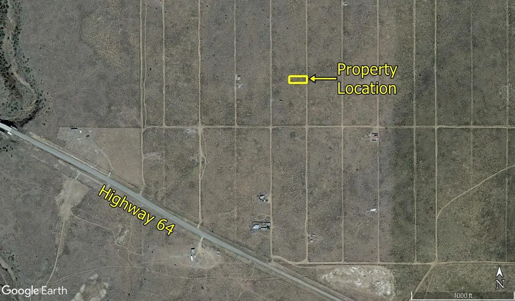 This property is Unit 8, Block 151, Lot B in Tres Piedras Estates. It is in the southwest part of Unit 8. It has 63.6 feet of road frontage on its east side and is 172 feet deep. It is conveniently close to Highway 64, only about 0.4 mile away.
