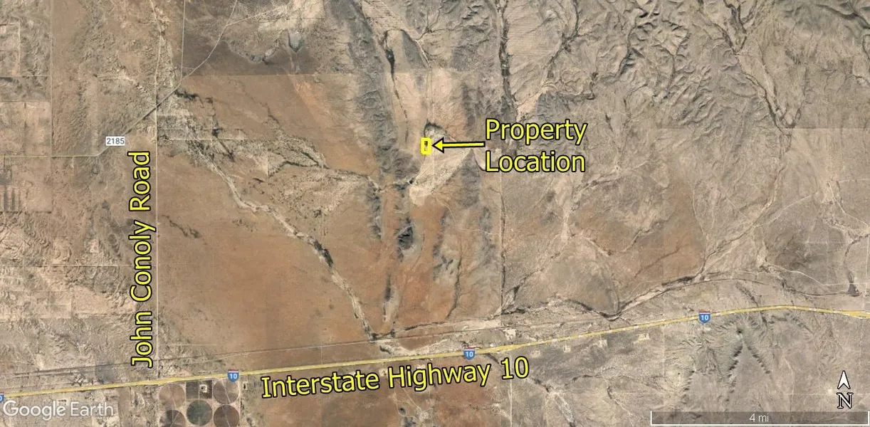 A prominent local watering hole, known as East Tank, is nearby. The old trail road known as Apache Road is nearby, and a connecting trail road runs through this property.