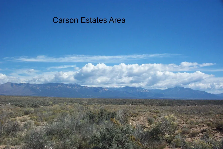 Carson Estates is lightly sloping to the south and is bordered on the east by hundreds of acres of BLM land and on the north by thousands of acres of the Carson National Forest.
