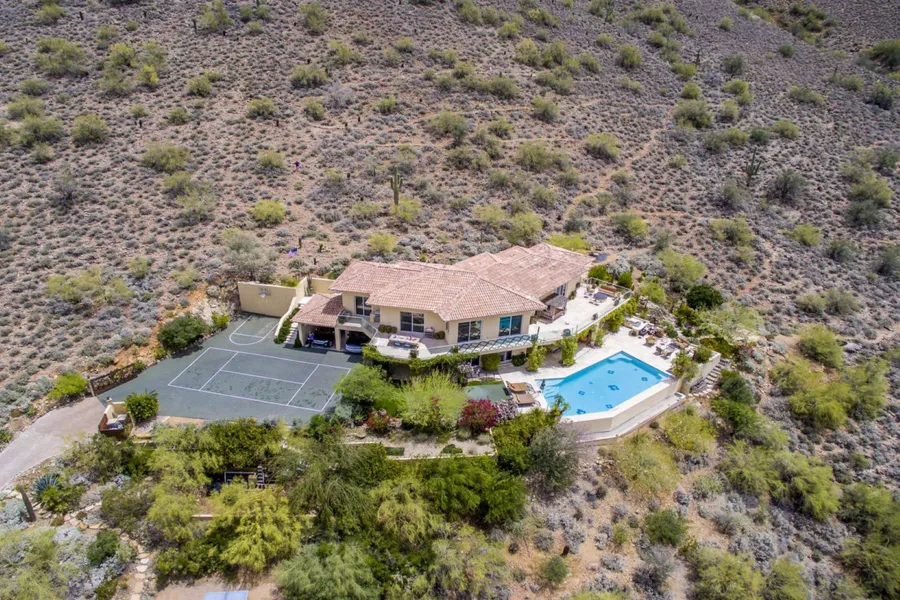 Entertainers' dream home with huge views! Chef's kitchen with 2 ovens, 2 dishwashers, 2 grills, many interior and exterior group dining spaces. Master on main with walk-through shower to sauna and hot tub in private back patio. 4 Guest bedrooms on lower level with access to outdoors. Large office area upstairs, w/d upstairs and downstairs. Home backs onto Cave Creek PRESERVE with incredible views, abundant wildlife, and complete privacy. Outdoor recreation includes tee boxes, putting green, zero edge pool, and more. 5 minutes to GOLF, gourmet grocery & artisan shops, unique family-owned & Michelin-style restaurants, 10 minutes to I-17 and Scottsdale Rd. & new semiconductor offices. No HOA, PRIVACY, MOMENTOUS VIEWS. COME & ENJOY YOUR PRIVATE OASIS & ARIZONA LIFESTYLE!