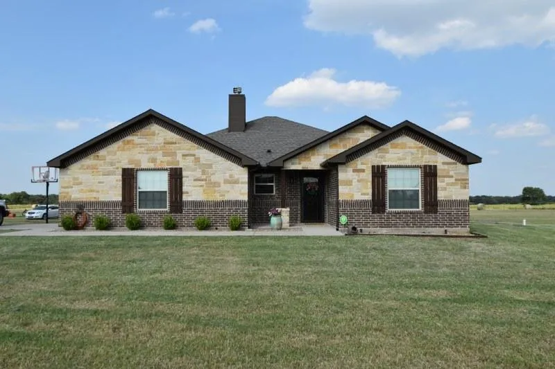 The home sits on 13.853 acres of land in a restricted area located in the highly sought after Huckabay School District. It is fully fenced, 3 sides being smooth cable and the back is barbed wire. There is currently not any trees on the property so you are able to have them planted where you please. Property offers plenty of lush green pastures, the back is planted in Tifton and the front in Klein, and a large trap for your animals is located in the front corner. The property is level & ready to build the barn and arena you have always wanted! The oversized lot and its location to town, makes this property perfect for a growing family or first time home buyer.
